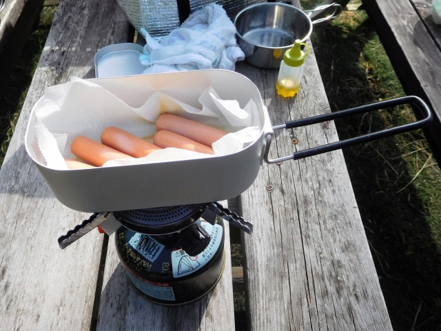 ガスバーナーでお湯を沸かし、